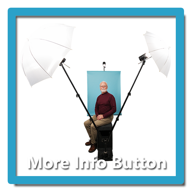The Instant Studio is equipped with 2 umbrellas, a hair light, your choice of backgrounds and a background light. The unit is radio controlled and operates on its own power eliminating the need for electrical cords that could become a trip hazard.